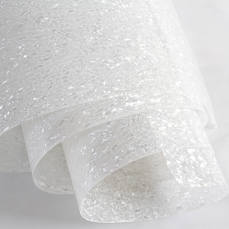 3、它質(zhì)地柔韌,不易折斷,并具有色澤鮮艷、花色繁多、閃光性好、有彈性、耐水、耐油、耐酸、強(qiáng)度高、容易加工成形等。